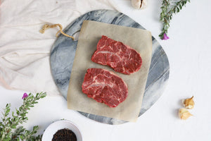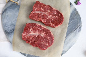 Certified Organic Oyster blade steak is a versatile and economical cut of meat which comes from the shoulder. This piece of meat can be roasted in a piece, marinaded and cooked on the BBQ, diced, slow cooked, stewed, pan seared, even cut into strips for stir fry. A versatile, flavoursome cut of meat that is more budget friendly.