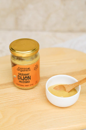 Ceres Organics Dijon Mustard is made using a careful selection of brown mustard seeds. The heat of the brown mustard is released giving Dijon mustard its unique quality. Over time this heat fades and it becomes a milder mustard, so if it is heat you love the jar should not be stored for too long. This is a classic mustard used in cooking or with a meat dish.